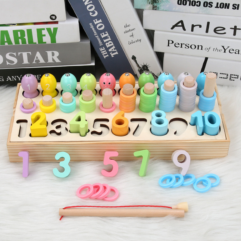 Wooden children number shape multi-in-one matching board fun cognitive fishing logarithmic jigsaw puzzle puzzle early education toys